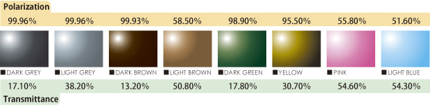 All 8 colors of CAESER-FLIP lenses cutoff 99.9% or more of ultra-violet (380μm). The thin and light lenses protect your croosh eyes.