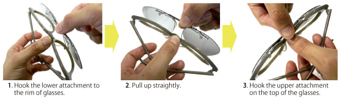 CAESAR-FLIP can be attached easily by hooking on your glasses. It doesn’t take your time. Upper and lower wires hold your glasses with stability and style.